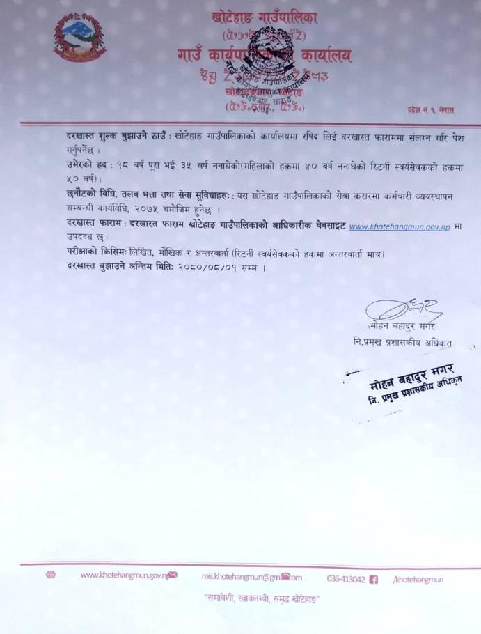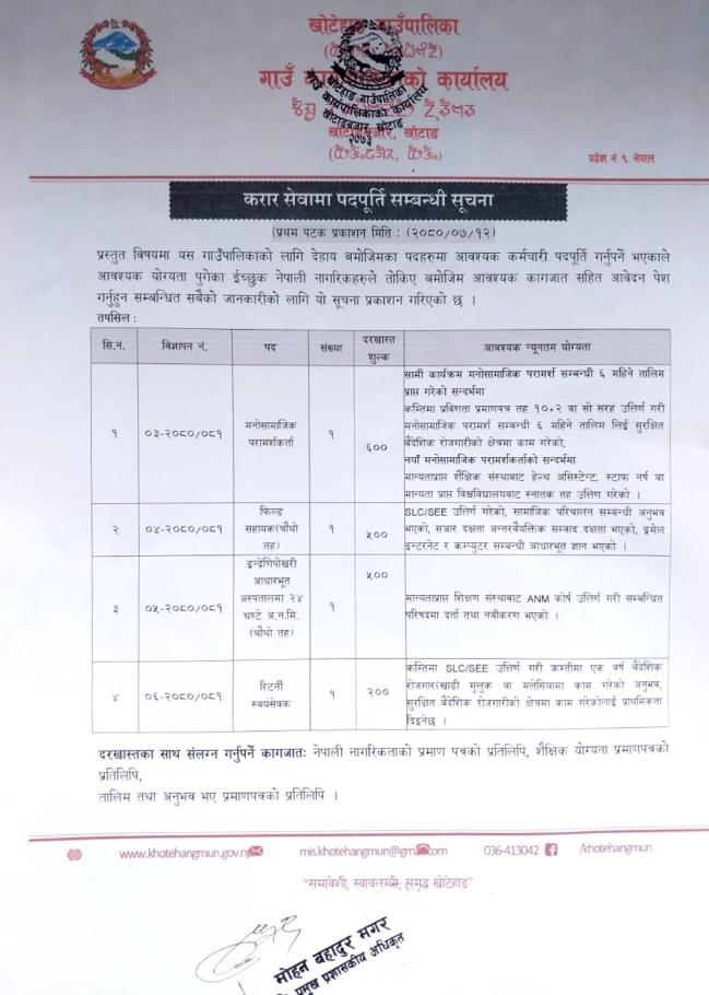 करार सेवामा पदपुर्ती सम्बन्घि सूचना ।।।