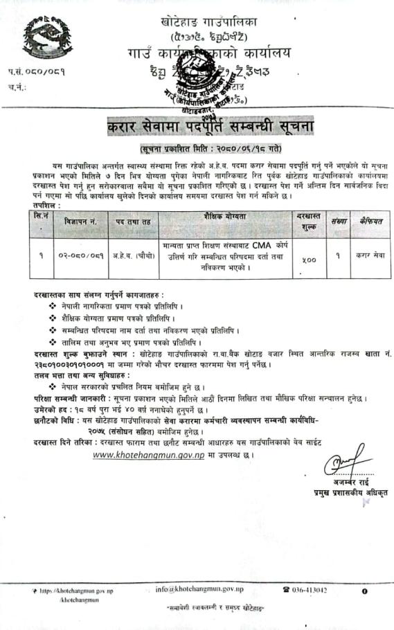 करार सेवामा पदपूर्ति सम्बन्घी सूचना।।।