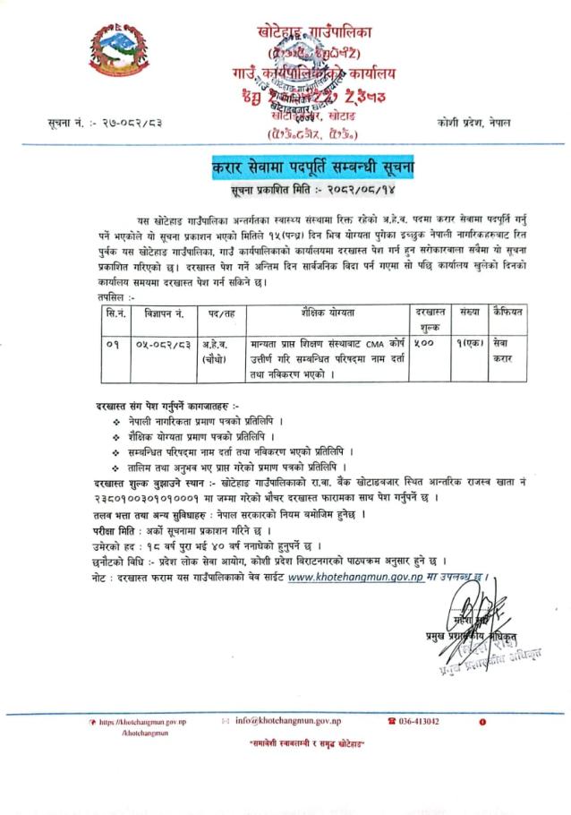 करार सेवामा पदपूर्ति सम्बन्धी सूचना